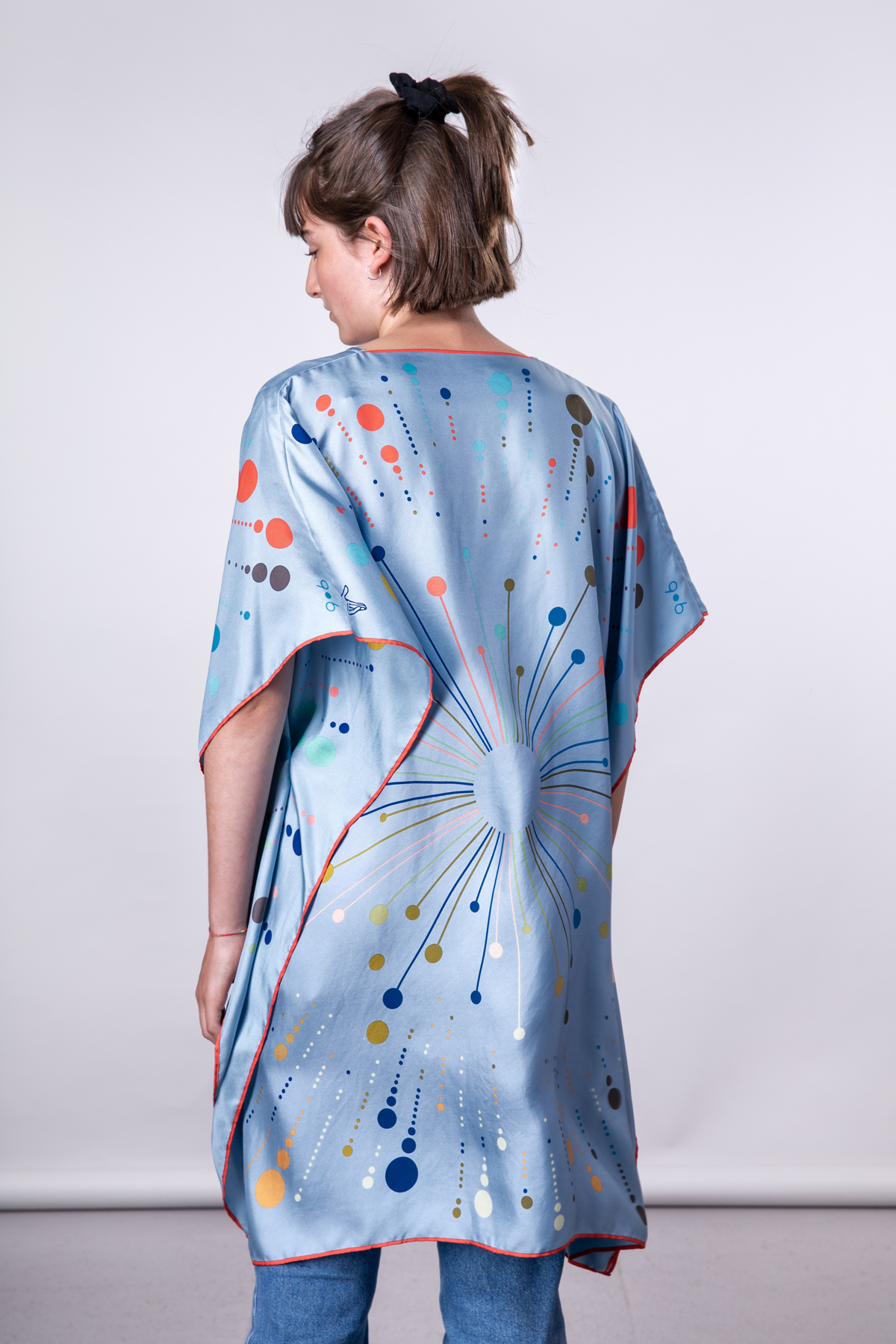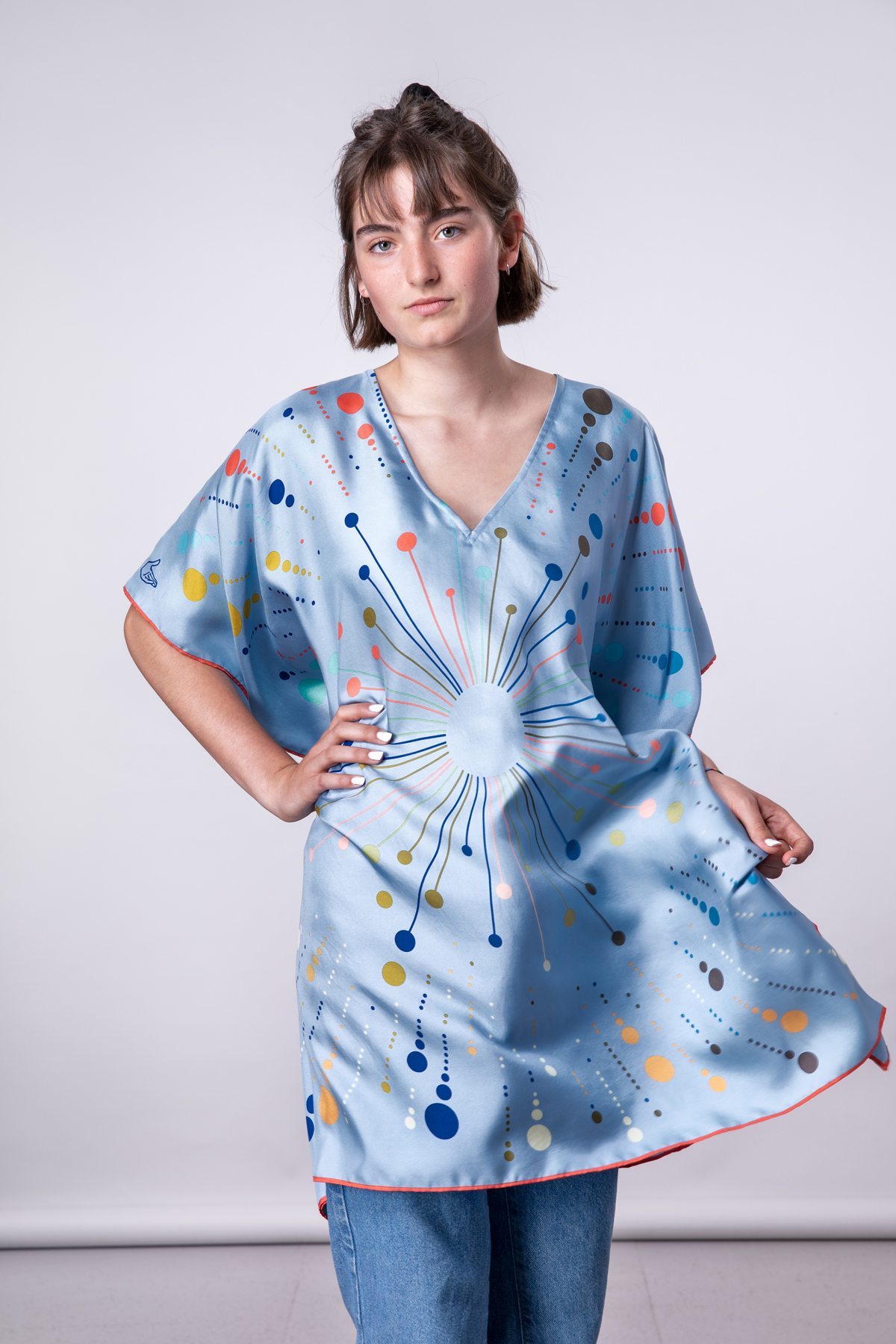 The Basler Wirrgarten Foundation which cares for people suffering from dementia, celebrated its 20th birthday. Our contribution to the celebration was the production of this foulard. We made it in collaboration with the designer Andreas Kreienbühl and our color specialist Martina Böhler. All the magic is based on the fact that the design template was put into a 90 degree shape, so the square screen could be rotated by 90 degrees and thus be used in four different ways: horizontal, vertical, top, bottom. This is the cause of the fact that each of the foulards has four different color combinations, a different one in each corner.